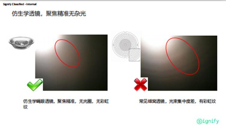 2、仿生透镜,控光:仿生学蝇眼透镜,高效聚光,光斑过度自然,无彩虹纹
