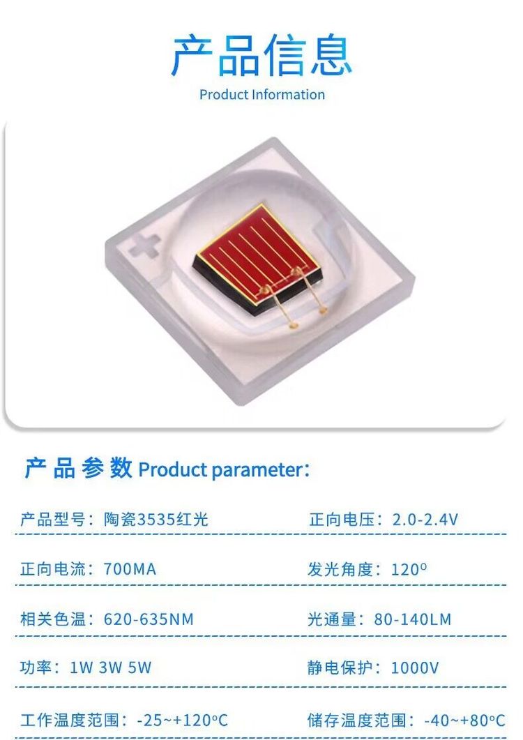 车灯光源红光3535凸头红光灯珠3W 630/660 医美 理疗灯珠 高亮度LED 品牌 | 宏智光电 | ||