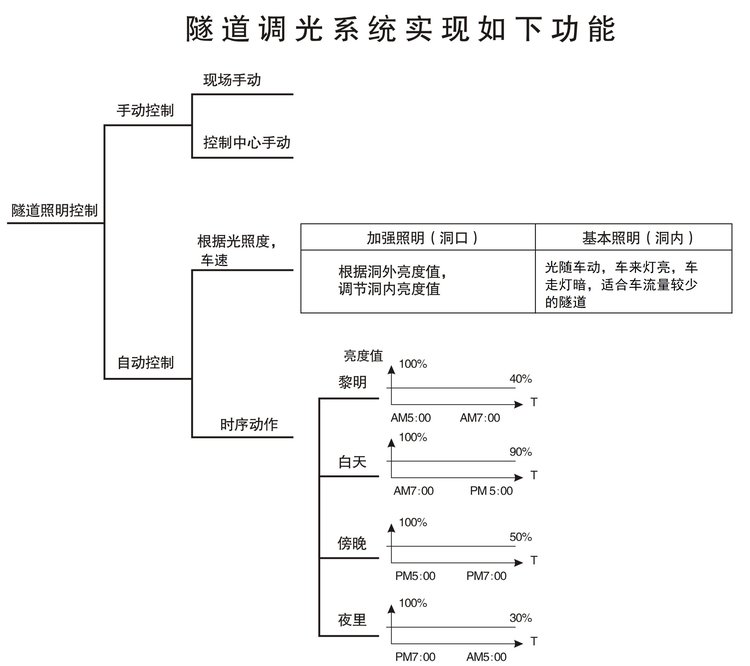 数据,根据这两项参数,做洞口亮度自动调节,洞内光随车动的照明效果。