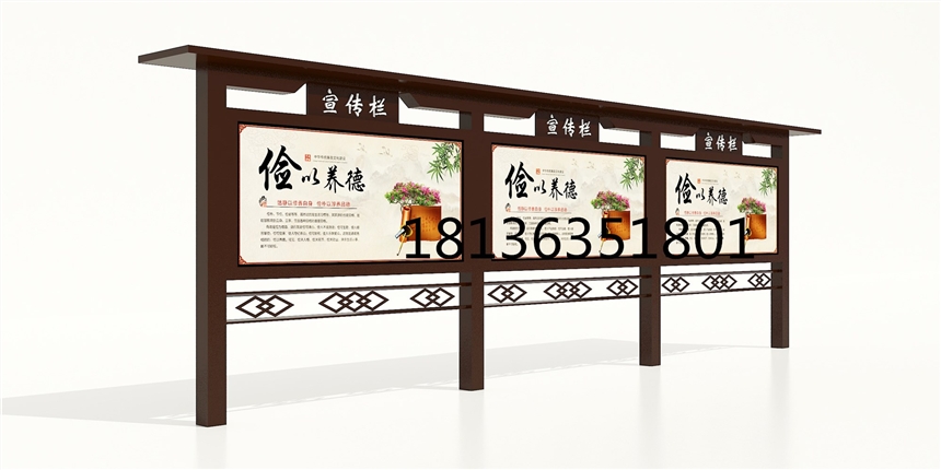 本公司供应企业宣传栏、校园宣传栏、医院宣传栏(广告牌,公告栏),地铁警示牌,广告灯箱,公交站台宣传栏,旗杆,花草牌,果皮箱,公交站台候车亭等。产品特点: 1、宣传栏材料:不锈钢、镀锌钢板,钢板(冷板)等; 2、面板材料:钢化玻璃; 3、开启方式:液压支撑杆,节省人力,双面开启,单面开启; 4、备选设备:滚动系统、三面翻,路名牌、LED; 5、型号外观:结构合理、美观大方、经久耐用; 6、规格大小:自由选择、定制; 7、滚动功能:可换画2~10幅,画面停留时间可任意设定,自动开关机,自动循环运转 8、箱体数控设备生产,机械精度高,工艺有保证,防水,防尘,抗静电设计; 9、外观设计:颜色任选,喷塑、烤漆;挂壁式、落地式、吊装式、组合式; 10、画面:单面转画、双面转画、单面固定、双面固定;画面材质为高精度数码丝印(防水、防紫外线照射)。 11、灯箱材质:不锈钢板、镀锌板、冷板烤漆; 12、视窗材质:钢化玻璃;
