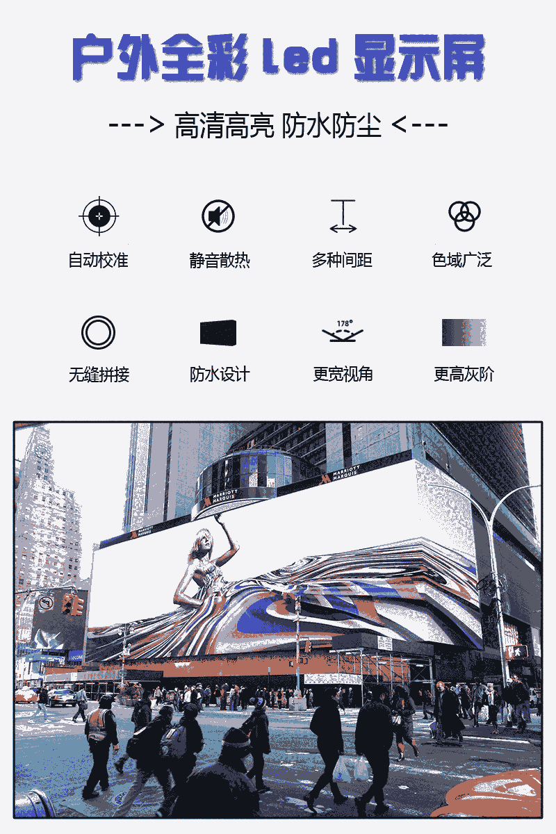 深圳市中品瑞科技有限公司是一家专注于中高端全彩led显示屏研发与生产的实力厂家,公司地处广东深圳,目前旗下产品包含有室内全彩屏、户外全彩屏、小间距led显示屏等众多产品型号,被广泛应用于高铁站、体育馆、地铁站、城市标志建筑、社区广场、公园、景区、游乐园、科技馆、博物馆等众多场景,旗下产品拥有相比同行更高的刷新率跟灰度等级,显示效果更加清晰、细腻并且全系支持定制化生产服务,能够满足不同场景的使用需求。