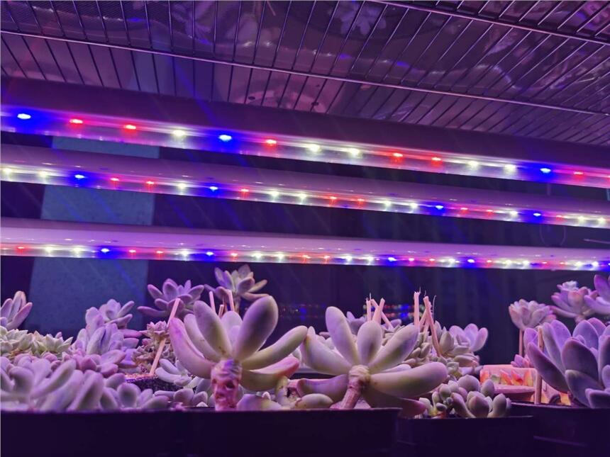 led植物灯的特征:波长类型丰富、正好与植物光合成和光形态建成的光谱范围吻合;频谱波宽度半宽窄,可按照需要组合获得纯正单色光与复合光谱;可以集中特定波长的光均衡地照射作物;不仅可以调节作物开花与结实,而且还能控制株高和植物的营养成分;系统发热少,占用空间小,可用于多层栽培立体组合系统,实现了低热负荷和生产空间小型化。