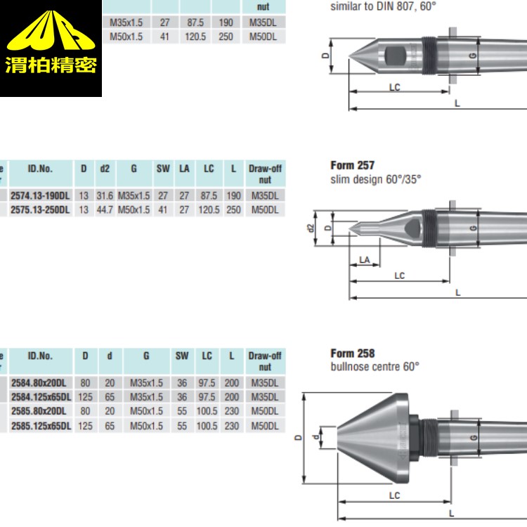 BRUCKNER特殊涂层死顶尖不同型号: