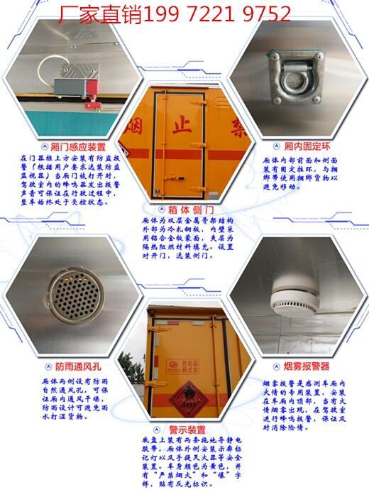 备注:1、厢体顶部封闭,不可开启;2、厢体侧面板选装开百叶窗,选装不带侧门,选装侧门型式及位置;选装液压升降尾板,选装瓦楞;3、厢体颜色可变化,文字喷涂位置可变化;4、前置排气系统,ABS系统型号为4460046300,生产企业为威伯科汽车控制系统(中国)有限公司;5、该车用于运输具有独立容器(瓶)包装的:粘合剂,涂料,涂料溶液,煤油,苯,甲醇,乙醇,丙酮,甲苯,二甲苯,机油,类项号:3;6、防护装置材料:侧面防护及后下部防护装置材料材质:冷弯型钢/Q235,连接方式:焊接加螺栓连接,后下部防护装置截面尺寸100mm×50mm,离地高度540mm;7、MC05.18-50发动机油耗值为26.3L/100km,MC05.21-50发动机油耗值为26.4L/100km;8、装配限速装置,限速80km/h,安装具有卫星定位功能的行驶记录仪;9、采用前盘式制动器,子午线轮胎。 |