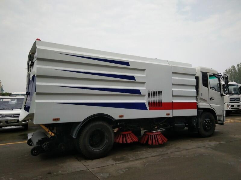 1.东风洗扫车出口价格采用吸扫混合的方式收集垃圾,湿式除尘、电液控制,液压倾翻卸料的作业方式对路面进行清扫作业。