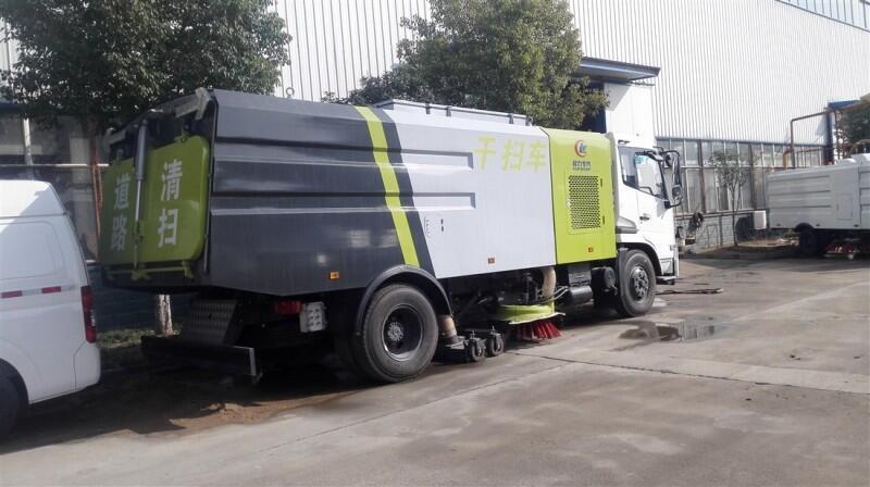 1.3吨洗扫车出口价格采用吸扫混合的方式收集垃圾,湿式除尘、电液控制,液压倾翻卸料的作业方式对路面进行清扫作业。