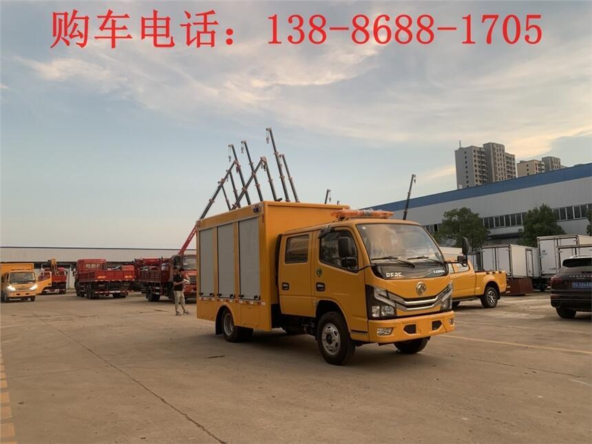 设备采用东风底盘改装,总质量12.5吨,发动机功率127kw,排放标准达到国五标准,3.8米轴距,带空调,方向助力,涉水深度600mm。