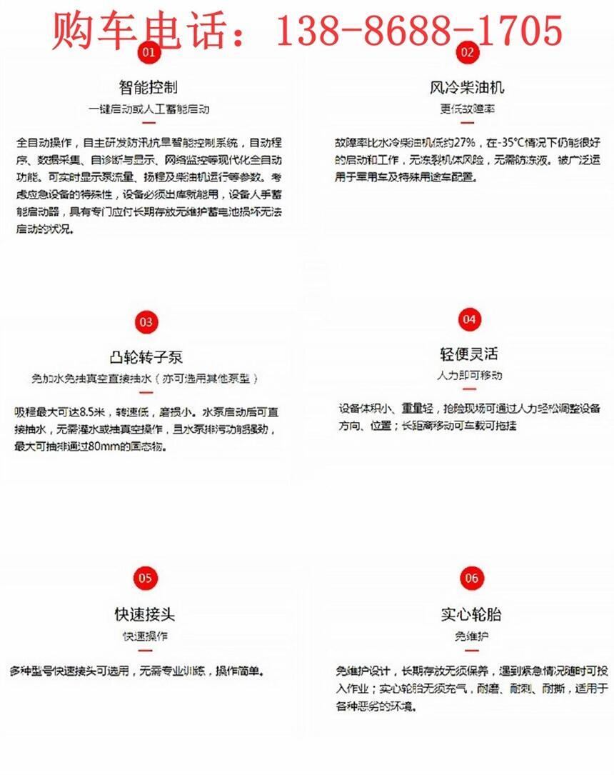 另可配柴油发电机组、移动水泵、控制系统等,可满足深水区域抢险工作,保障城市防汛排水通畅,提高防汛排涝能力,确保汛期群众生命财产安全和城市道路正常运转,真正实现了移动水泵的概念,城市消防领域,排涝、抗旱、矿井抢险、森林消防、高速公路桥梁底涵排水、灌溉等领域。
