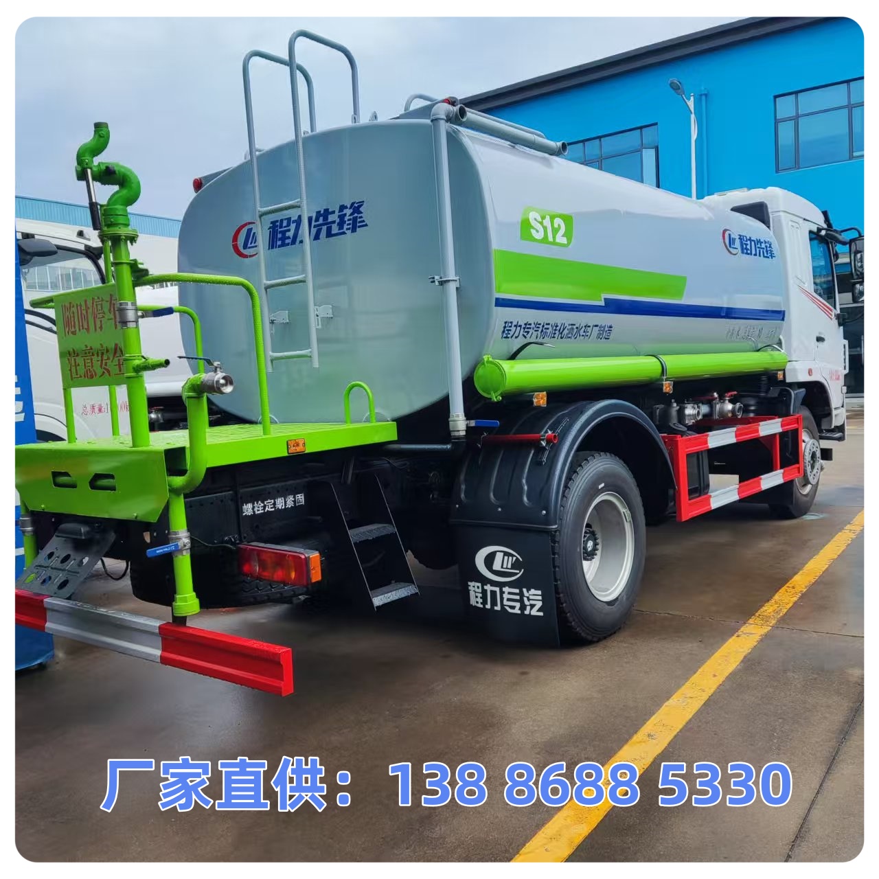1.罐体总容量为9.71立方米,罐体有效容积:9.25立方米,此车型仅选用3950mm轴距底盘,罐体外形尺寸(长×长轴×短轴)为(mm): 4300×2150×1520; 2.侧防护及后下部防护装置均采用Q235B材质,均采用螺栓连接,后下部防护尺寸:150×50(mm),离地面高度480mm。3.ABS系统生产厂家/型号 :焦作博瑞克控制技术有限公司/J ABS;襄阳东风隆诚机械有限责任公司/ABS/ASR-24V-4S/4M。4.可选装弧形喷雾,箭头灯。5.专用装置:罐体,主要用于洒水及园林绿化。6.选装后平台外观,随底盘选装燃油箱,电瓶,尿素罐,储气筒左右安装位置,选装新款轮罩外观样式,选装罐体外观样式,选装新款整车外观样式,选装新款侧后防护样式,选装驾驶室样式,选装气动球阀,选装腰冲装置,选装箭头灯样式,选装进出水口管道样式,选装前冲鸭子嘴样式,选装高位花洒,选装爬梯扶手,选装后平台水炮样式,选装炮筒样式,选装无炮筒样式,选装侧防连接件样式,选装工具箱,选装智能摄像头,选装前智能水炮样式。7.选装前智能水炮。当选装前智能水炮时前伸为560mm,对应整车长为8220mm。