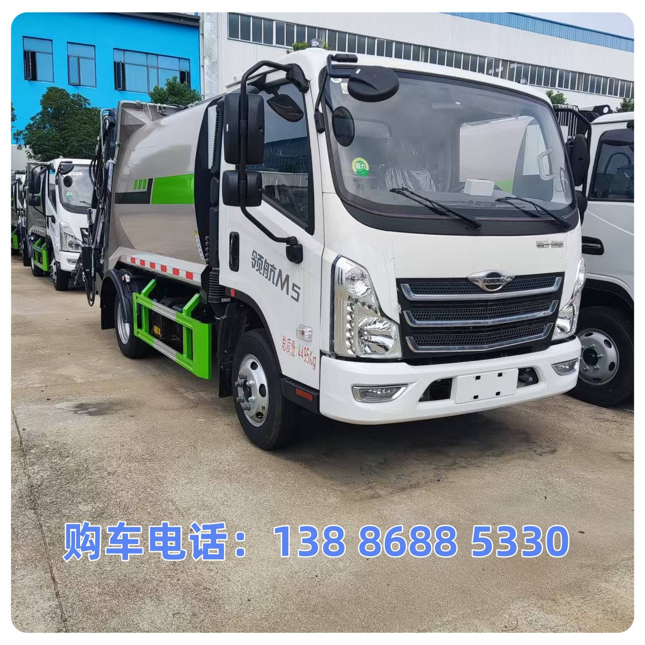 该车主要专用装置由箱体、压缩系统组成,主要用于城镇环卫垃圾的收集与运输;采用4500(3950)mm轴距底盘改装,该车为翻桶装置样式,选装全密封斗装置样式,摆臂装置样式,半密封斗装置样式.选装不同工作装置时整车长/前悬/轴距/后悬/后伸对应关系为(mm):①翻桶装置和半密封斗装置:8800/1260/4500/2720/320,8800/1240/4500/2740/320,8580/1260/4500/2500/320,8560/1240/4500/2500/320,8040/1260/3950/2510/320,8020/1240/3950/2510/320,②摆臂装置和全密封斗装置:8680/1260/4500/2720/200,8680/1240/4500/2740/200,8460/1260/4500/2500/200,8440/1240/4500/2500/200,7920/1260/3950/2510/200,7900/1240/3950/2510/200. 侧防护材料采用Q235B碳钢,连接方式:左右侧面均采用焊接连接,后防护由专用装置替代,下边缘离地高:500mm;ABS型号为CM4XL-4S/4M,生产厂家为广州瑞立科密汽车电子股份有限公司;采用发动机型号与油耗值(L/100km)对应关系: YCS04200-68/25.88;WP4.1NQ190E61/22.03;选装直接供电式ETC车载装置,安装带有卫星定位功能的行驶记录仪;随底盘选装限速装置,限速88km/h.随底盘选装新风格格栅.选装新前格栅及新logo.选装新款前格栅,新款保险杠,新造型前雾灯.选装后部样式。