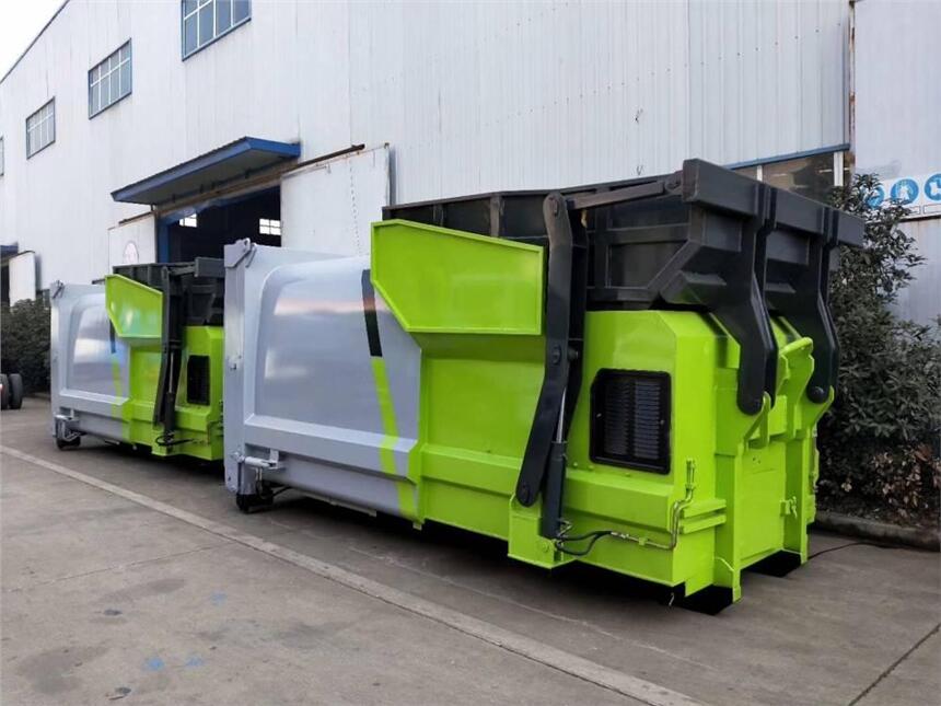 移动式压缩垃圾站采用经济且无污染的电力作为动力源,设备运营成低,占地面积小、无需土建或仅需简易土建,经济实用,解决城市选址难题,适合各种生活垃圾的收集与转运。实现车箱分离、设备与转运站分离,机动灵活,便于管理协调,提高车辆与设备的利用率;