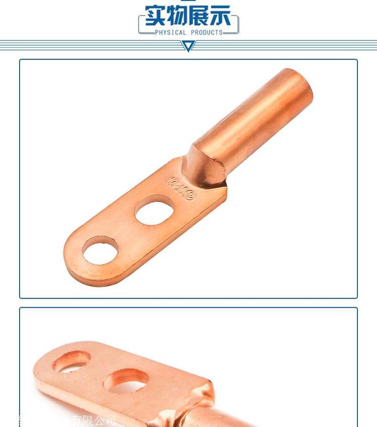 型号1:DT,是由T3铜棒做成, 产品外貌为锅铲圆头,可用于密封堵油,顶端这边为固定上螺丝用,末端插进剥皮后的电缆用端子钳压紧即可。