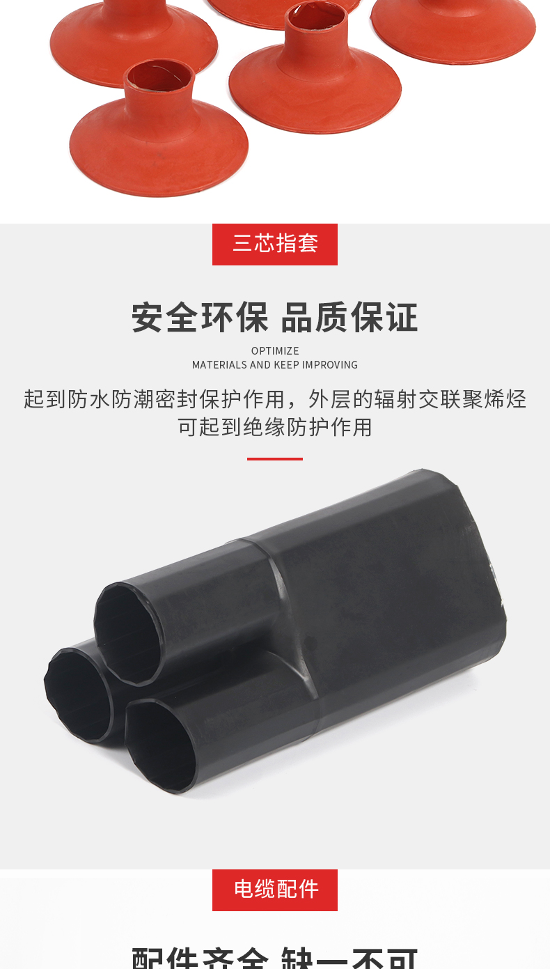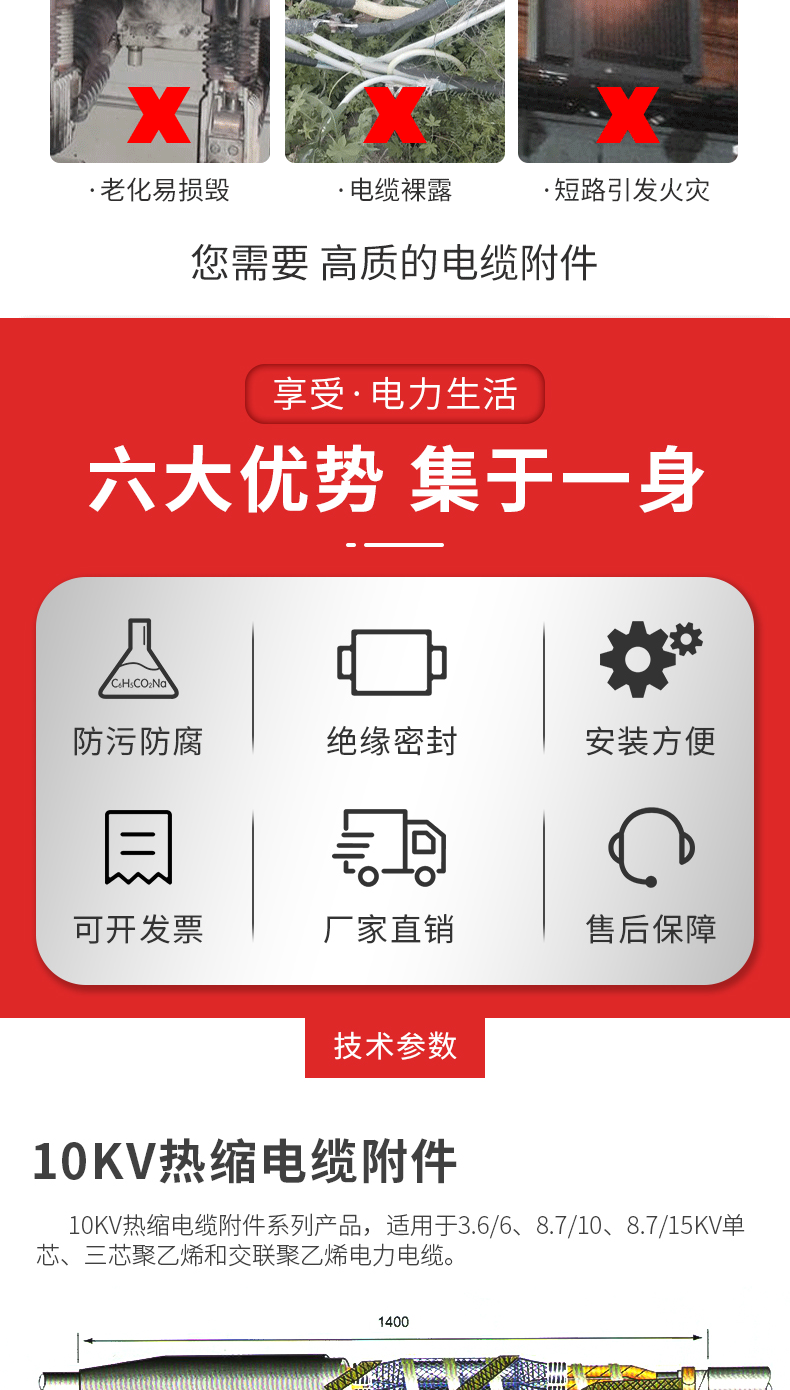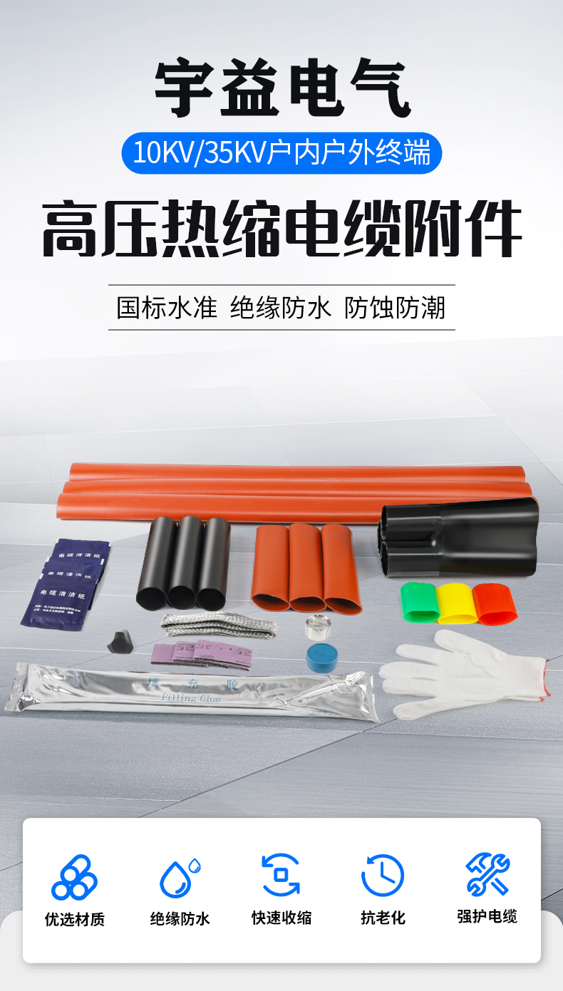 10KV三芯热缩电缆终端单芯户内户外电缆头高压电缆附件70-120平方