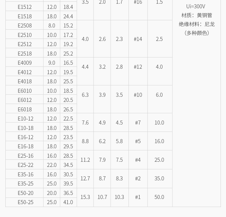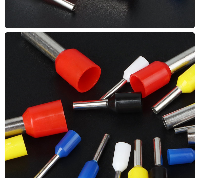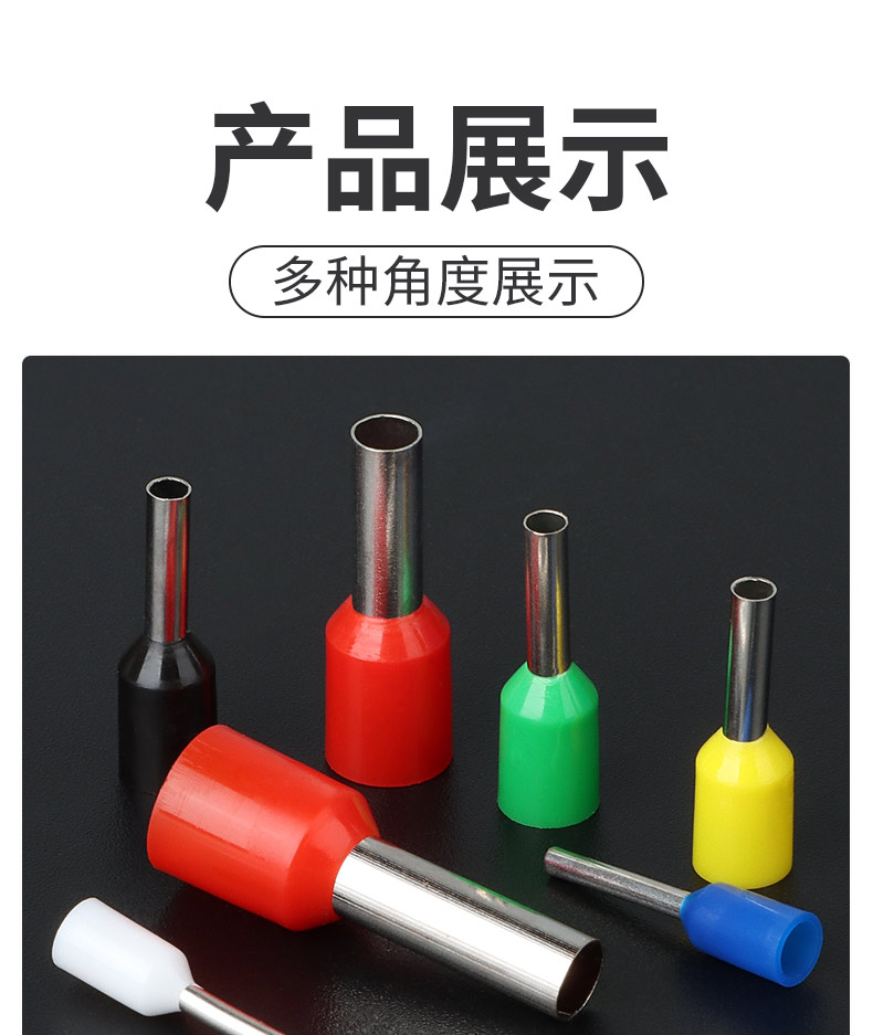 宇益E1508针形预绝缘端子镀锡VE1008欧式冷压接线端头压线耳黄铜