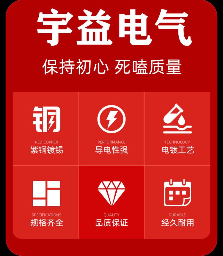 宇益电气DT铜鼻子镀锡线鼻子高压电缆铜端子紫铜镀锌铜线鼻