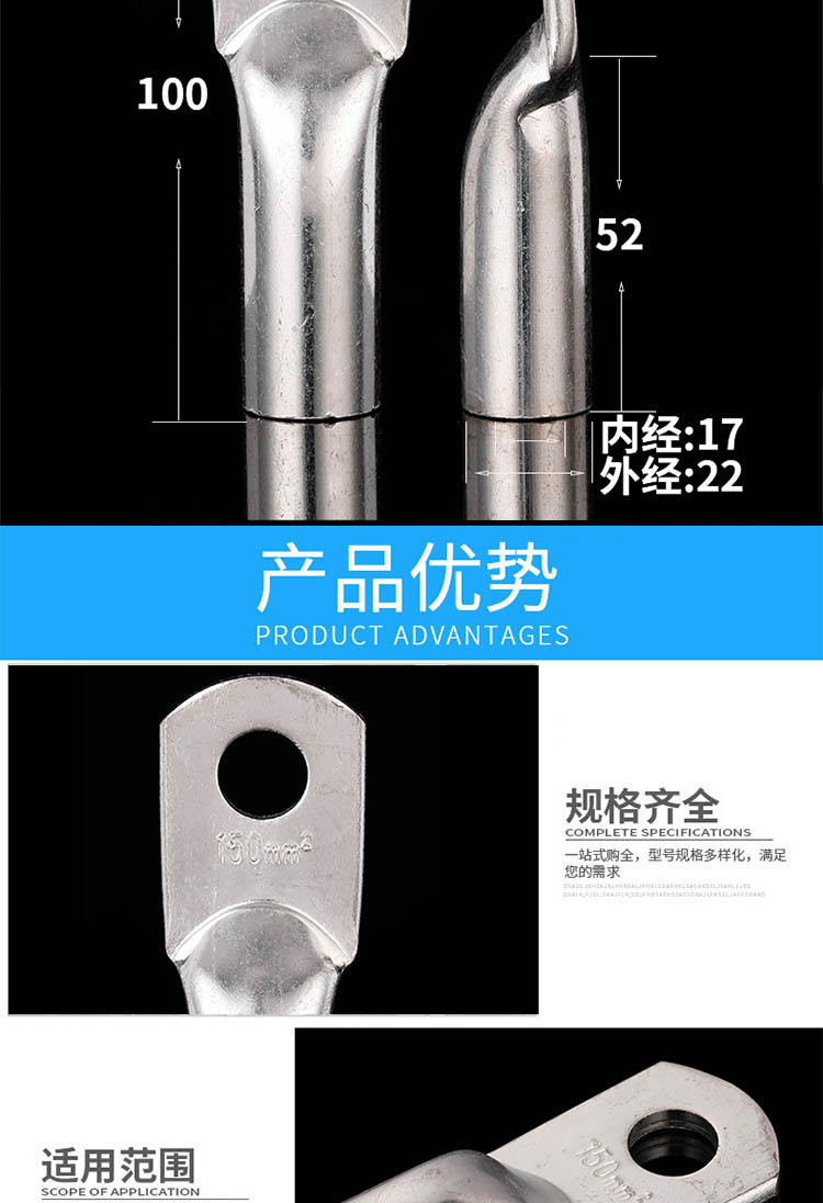 DT-G型电缆铜鼻子镀锡线鼻子镀锌铜接线端子管压铜线耳宇益电气