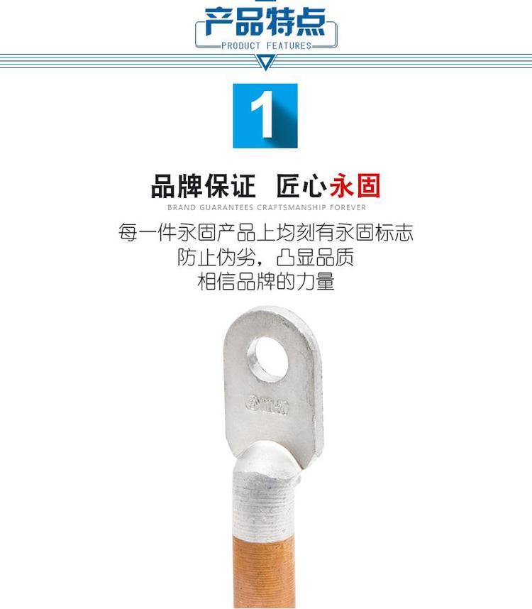 接线端子概述:接线端子做为连接器的一种,是电气行业中的一个重要组件,起着不可替代、不可忽视的作用,因工程技术人员在检修时首先也是从接口检查,也就是端子入手,因此接线端子的设计尤为重要。 产品的设计是集于:产品标准、材料、结构、电镀、认证、模具、及制造工艺的一种综合性设计,端子也不例外。河北双燕电力器材有限公司生产的接线端子符合国家《接线端子执行标准GB-T 14315-2008》DTL系列铜铝接线端子适用于配电装置铝芯电缆与电气设备铜端的过渡连接;DL铝接线端子用于铝芯电缆与电气设备的铝端连接;DT全铜接线端子用于铜芯电缆与电气设备铜端连接。产品采用摩擦焊工艺,具有焊缝强度高,通电性能好,抗电化腐蚀,使用寿命长等特点