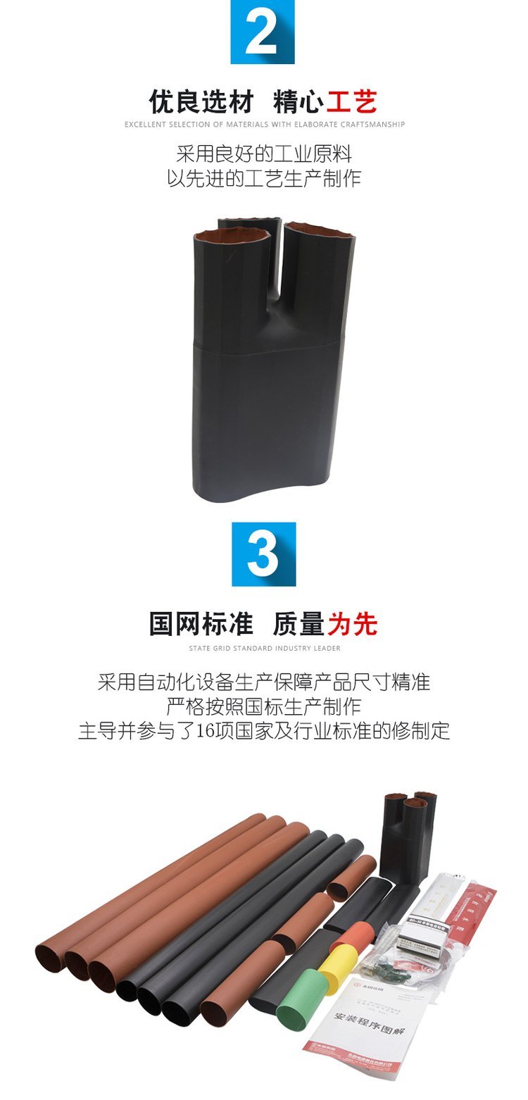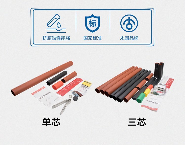热缩电缆终端头俗称热缩电缆头,广泛用于35KV及以下电压等级的交联电缆或油浸电缆的终端上。与传统电缆附件相比具有体积小、重量轻、安全可靠、安装方便等特点。产品符合GB11033标准,长期使用温度范围为-55℃~105℃,老化寿命长达20年,径向收缩率≥50,纵向收缩率