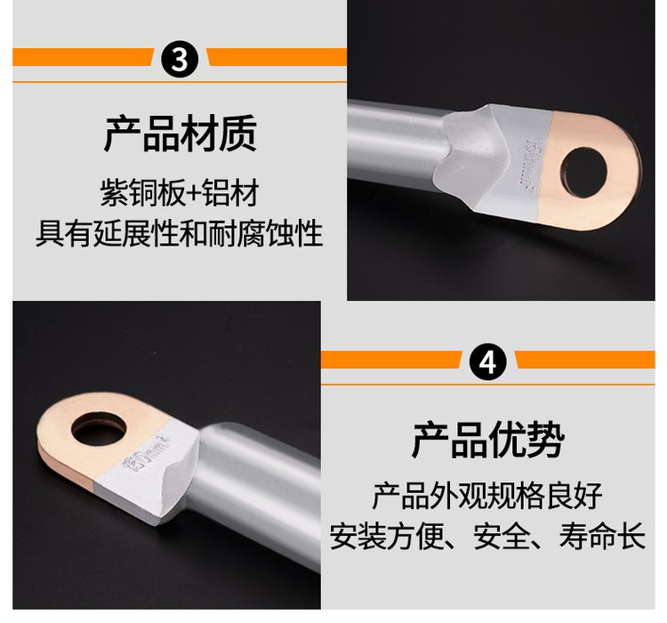 宇益电气DTL-185铜铝接线鼻子圆头铜 铝过渡接头型号铝线接线端子