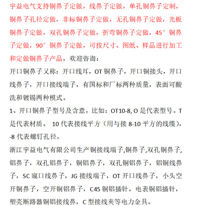 宇益定制小头铜鼻子DT-70/95/120/150/240平方塑壳断路器用铜线耳 型号 | DT小头铜鼻子 | ||