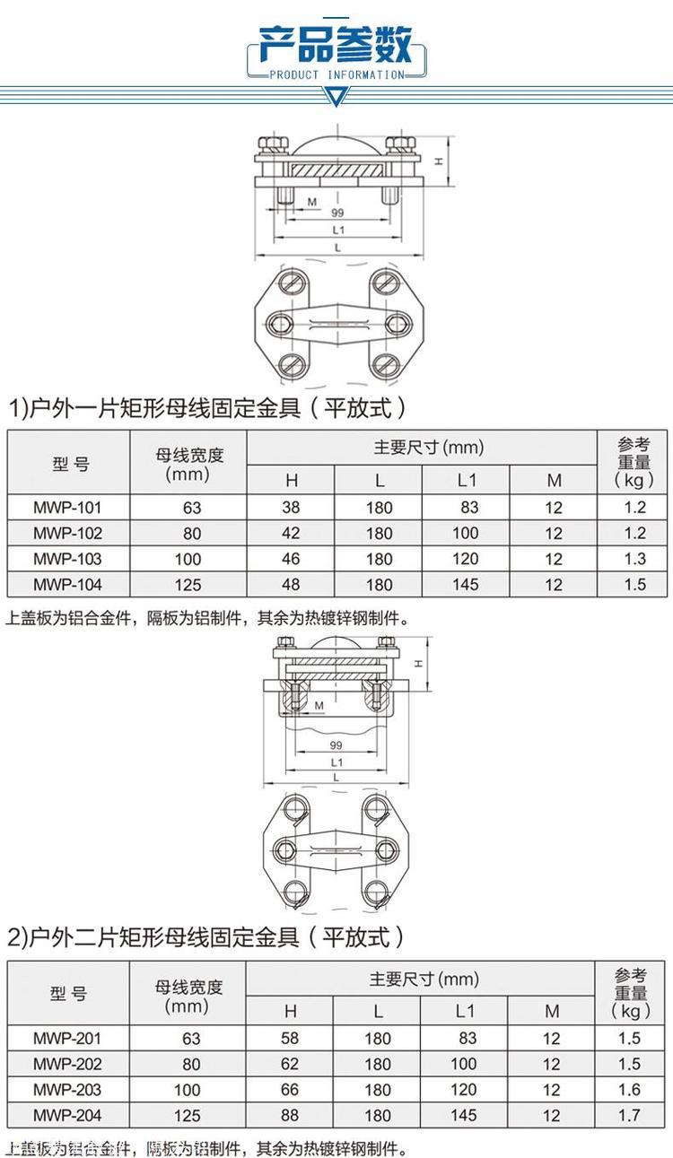 永固金具MWP-102矩形母线固定金具户外平放固定夹具