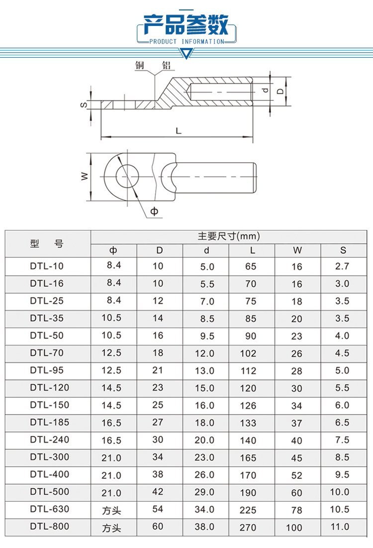 接线端子概述:接线端子做为连接器的一种,是电气行业中的一个重要组件,起着不可替代、不可忽视的作用,因工程技术人员在检修时首先也是从接口检查,也就是端子入手,因此接线端子的设计尤为重要。 产品的设计是集于:产品标准、材料、结构、电镀、认证、模具、及制造工艺的一种综合性设计,端子也不例外。河北双燕电力器材有限公司生产的接线端子符合国家《接线端子执行标准GB-T 14315-2008》DTL系列铜铝接线端子适用于配电装置铝芯电缆与电气设备铜端的过渡连接;DL铝接线端子用于铝芯电缆与电气设备的铝端连接;DT全铜接线端子用于铜芯电缆与电气设备铜端连接。产品采用摩擦焊工艺,具有焊缝强度高,通电性能好,抗电化腐蚀,使用寿命长等特点