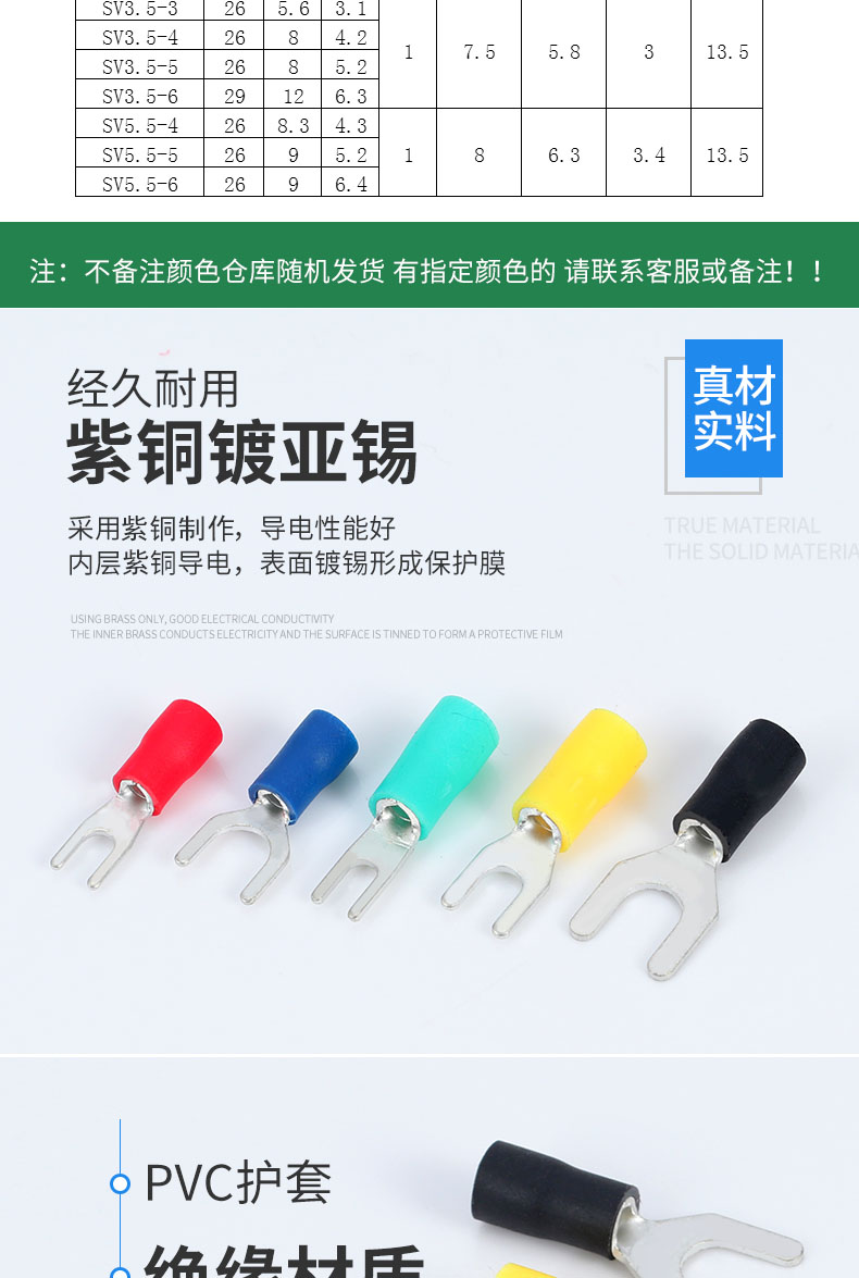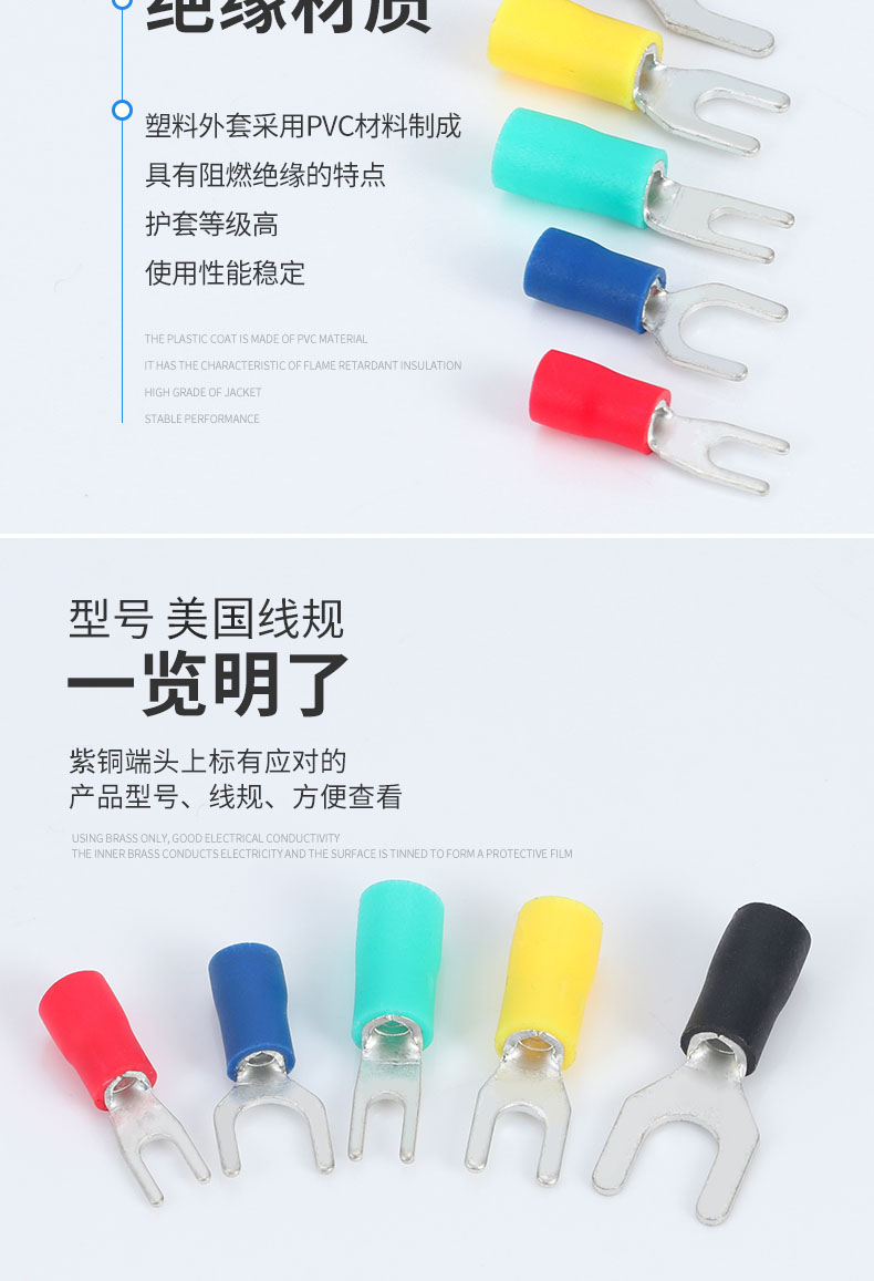 宇益电气SV叉型预绝缘接线端子冷压紫铜鼻子u型铜线耳二次接线鼻