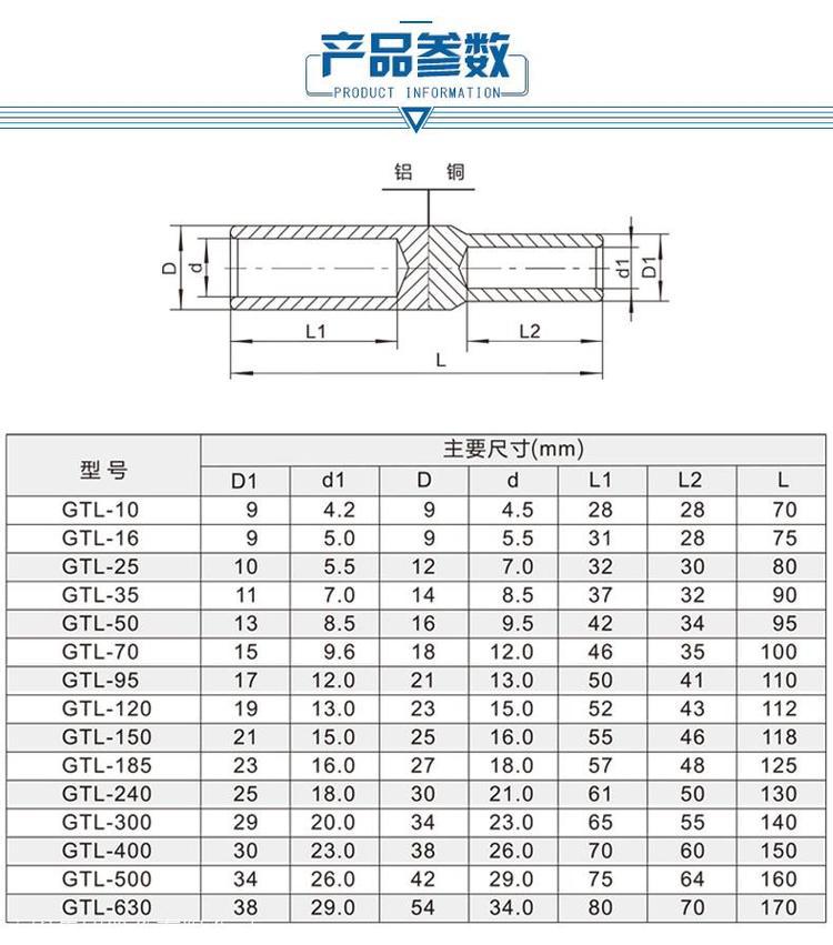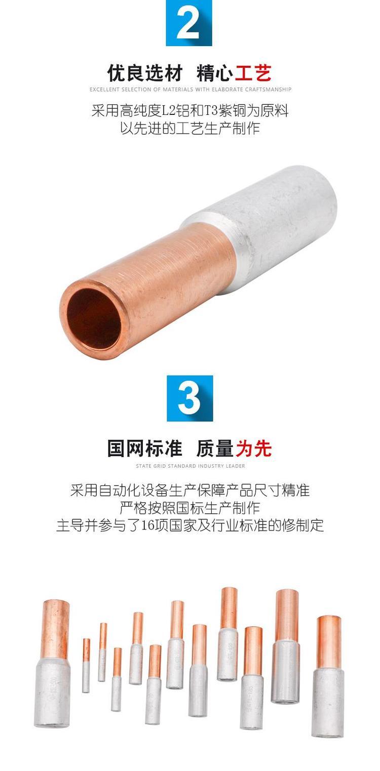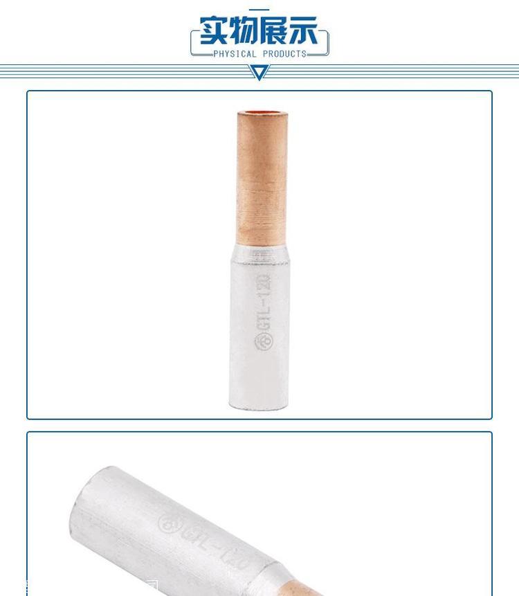 在电力传输连接及配电装置中经常需要将铝电缆与铜电缆连接,为避免铜电缆与铝电缆直接连接时产生的电化腐蚀,通常选用铜铝连接管进行连接。目前市场上的铜铝连接管大都是将铝制端与铜制端对接后焊接,其结构如图1所示,这种铜铝连接管用铜量大,制造成本高;同时,铜铝过渡截面小,安装在线路上长期承受导线对铜铝过渡面的拉力,对铜铝过渡焊接面形成破坏,导致产品在使用过程中电阻过大、温升过高,且易产生断裂现象,影响电力系统的正常运行。