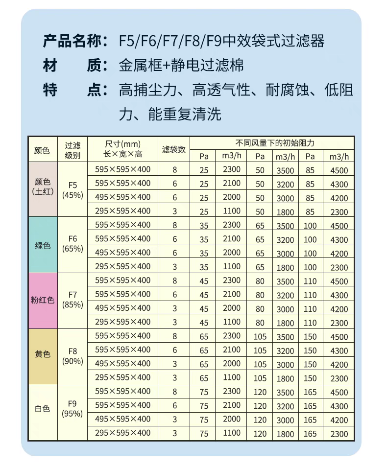 滤料类型 | 中效聚丙烯(PP)材质 | ||