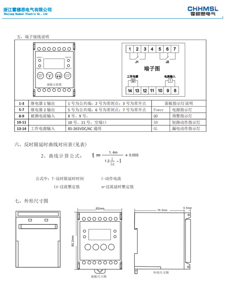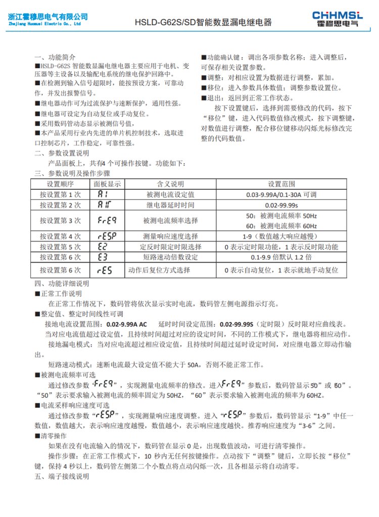 HSLD-G62S/SD智能数显漏电继电器用于发电机 变压器输配电系统 品牌 | 霍穆思 | ||
