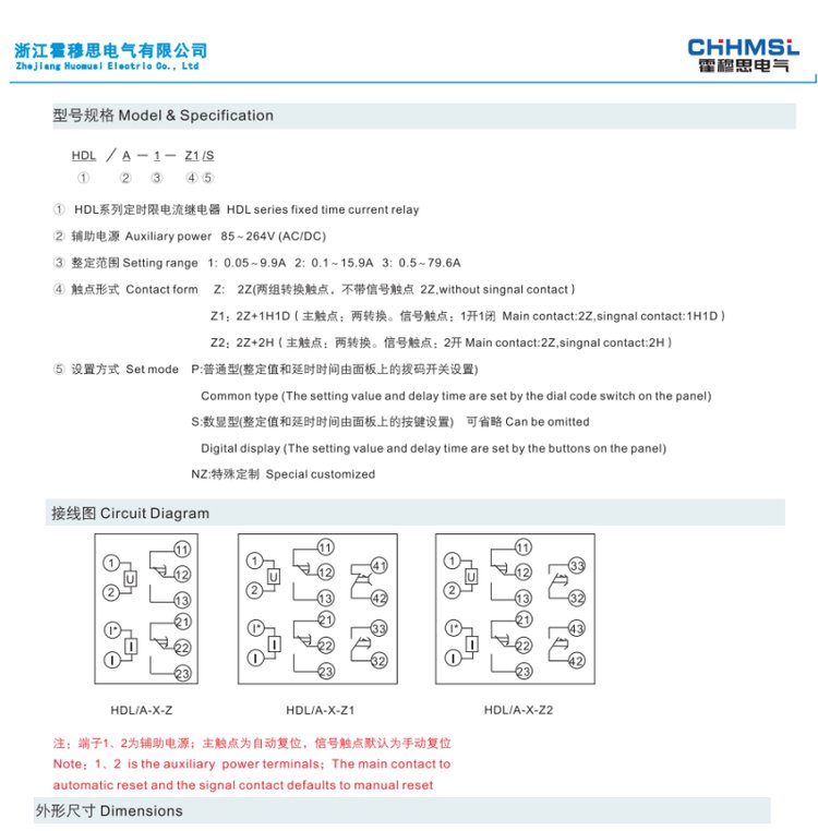 HDL/A-2-Z1/S霍穆思定时限电流继电器由集成电路构成回路 品牌 | 霍穆思 | ||