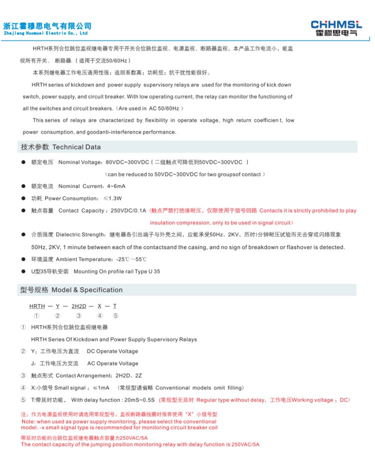 HRTH-Y-2H2D合位/跳位 监视继电器工作电压通用性强 品牌 | 霍穆思 | ||