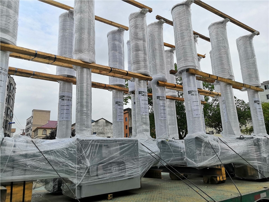 断路器三极组装在一个框架上,每极一柱单断口,配有 CT15 型弹簧机构。三极灭弧室的所有可动部件都机械地连接到弹簧操