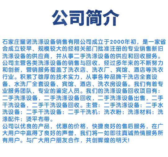 耀诺常年收购医院酒店宾馆干洗店设备回收实力商家严格工艺要求