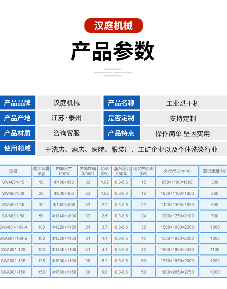 汉庭100kg工业烘干机洗脱烘一体机蒸汽电加热大容量