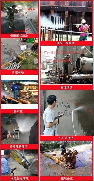管道疏通清洗机的工作原理是:下水道清洗机用于疏通、清除管道中的堵淤和污物。它以汽油机、柴油机或电机为动力驱动高压泵运转,将专业管道疏通用喷头通过高压泵与高压胶管连接,并将喷头直接放入需要疏通的管道当中。当高压泵工作时,利用喷头后方喷出的高压水所产生的反作用力,将喷头迅速向前推,并利用喷头前方喷孔所产生的高压水射流迅速的将管道清洗干净。