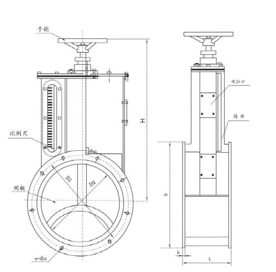 该阀中的阀体、阀板采用 碳 钢焊接而成,并在阀体上设有开度显 示器,能正确反映阀板的幵启位置,