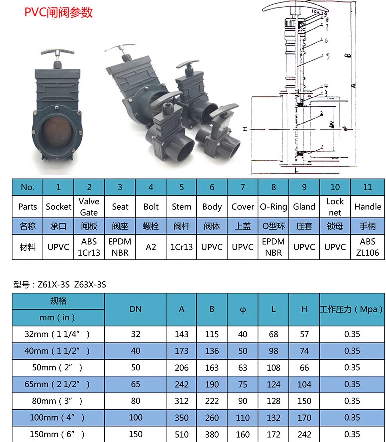 养殖场/养鱼池/雨水池/排污塑料闸阀拉插阀接口DE40-DE160低压阀 公称直径40cm