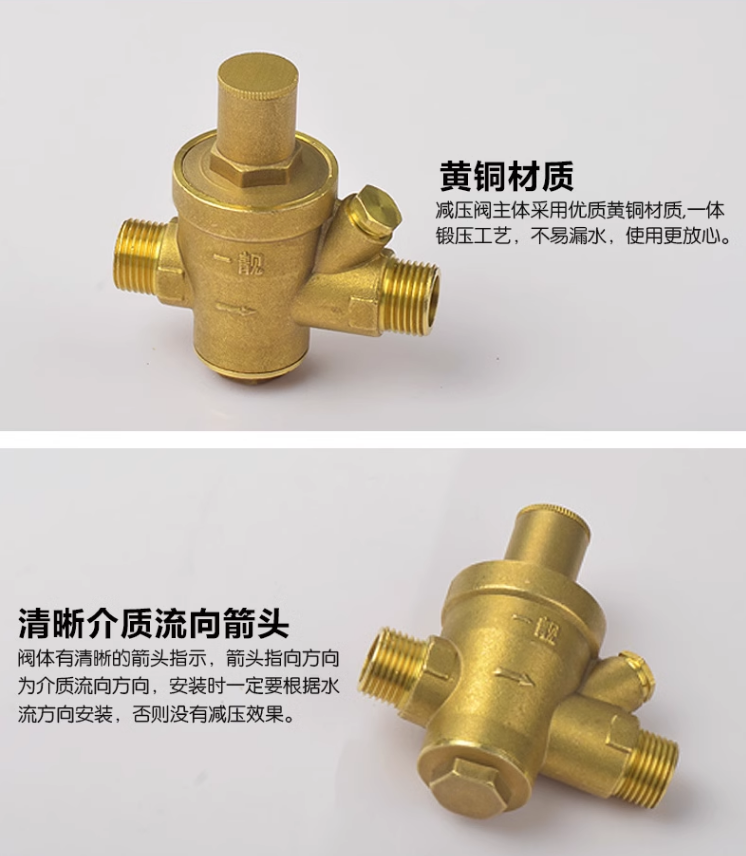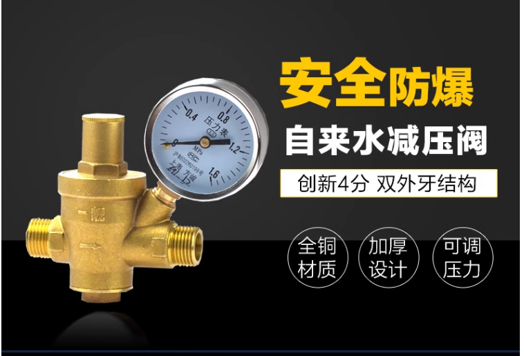 支管双外螺纹外丝全铜可调式减压阀稳压阀带压力表口径DN15-DN50