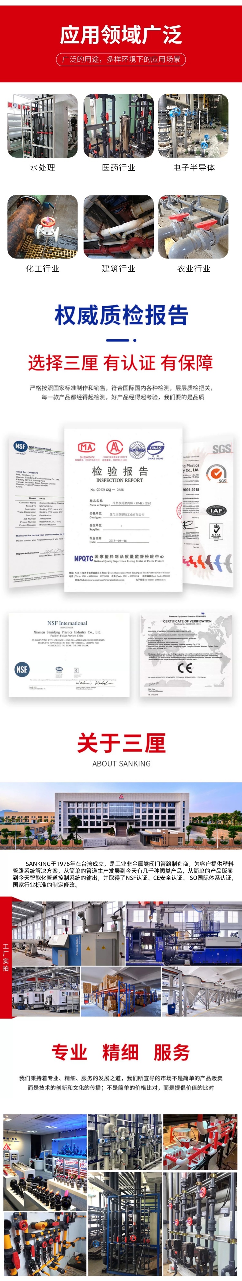 颜色 | UPVC(深灰色),PPH(米黄色),CPVC(浅灰色),PVDF(白色) | ||