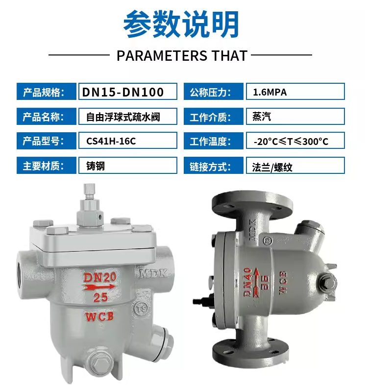 铸钢CS41H蒸汽法兰式自由浮球式疏水阀自动排水疏水器DN15-DN150