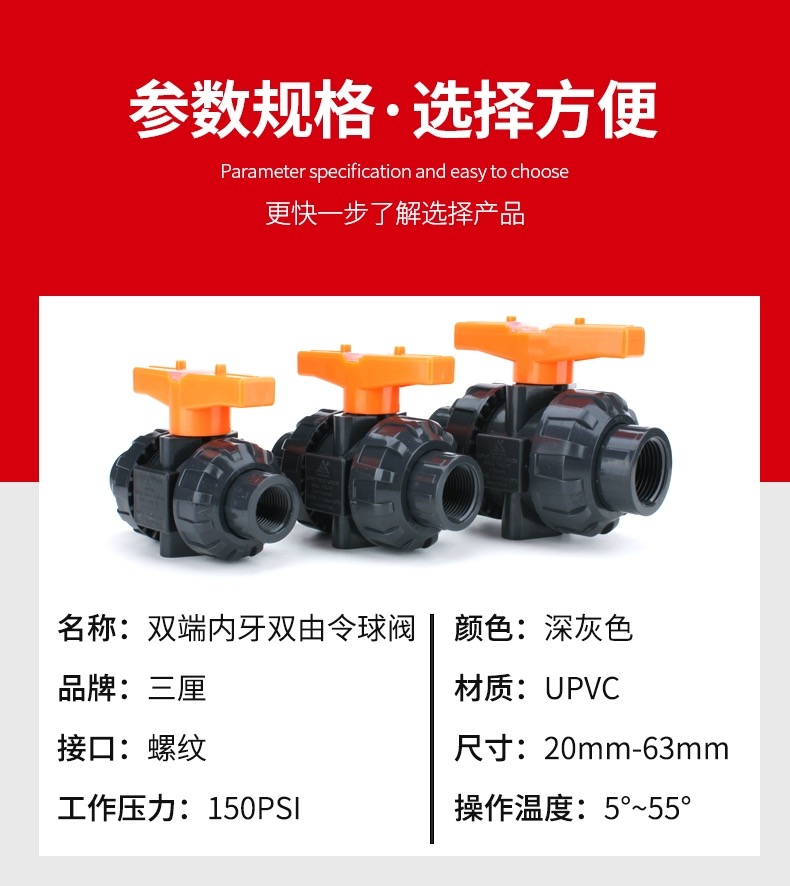 操作温度 | UPVC(5~55°C):PPH&CPVC(5~90°C) PVDF ( -20~120°C ) | ||