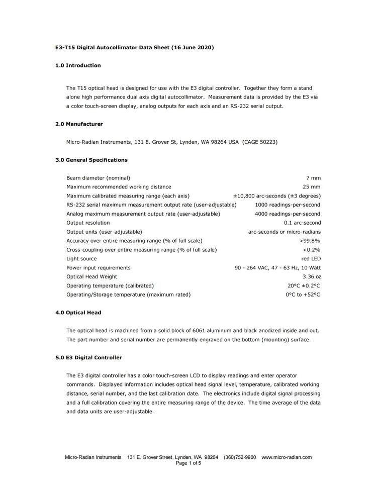 零件号别名 | 数字自准直仪 | ||