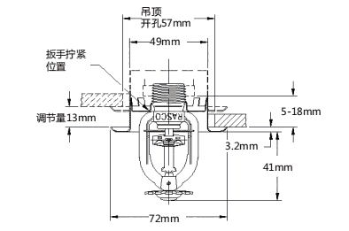 GFR80快速响应喷头按照GB50261进行安装,根据NFPA13标准或FM防损数据表设计的项目,同时参照其相应标准进行安装。直立,下垂,水平边墙及垂直边墙型采用D型或W2扳手安装,下垂嵌入及水平边墙嵌入型喷头采用GFR2型扳手。