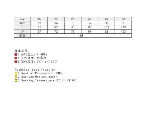 规格DN15 DN20 DN25 DN32 DN40 DN50