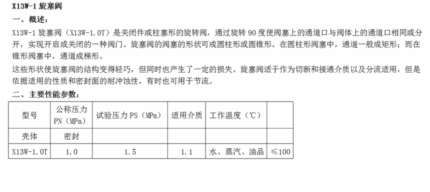 X13W-1旋塞阀