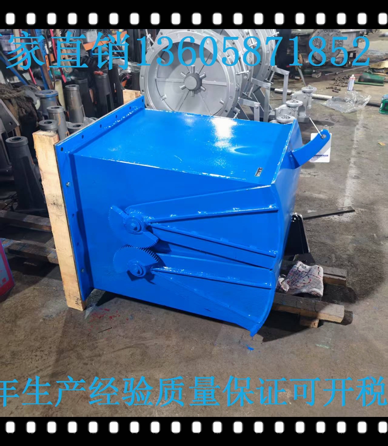 腭式闸门结构特点:腭式闸门主要由阀体、阀轴、扇形阀板、销齿齿轮及曲柄机构、电液动推杆或(电动推杆、)组成,腭式闸门采用优良钢板焊接结构、具有体积小、重量轻、阻力小。工作时,电液动推杆的直线往复运动,通过曲柄带动阀轴齿轮,使两个阀板作相对角度的摆动,从而达到控制物料之目的。
