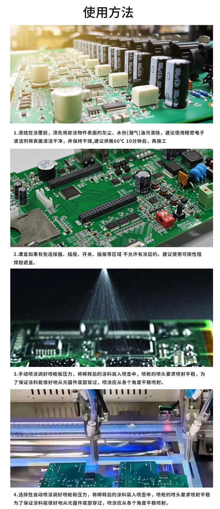 用途范围 | pcb表面涂覆、防潮、防盐雾、防霉、绝缘等 | ||