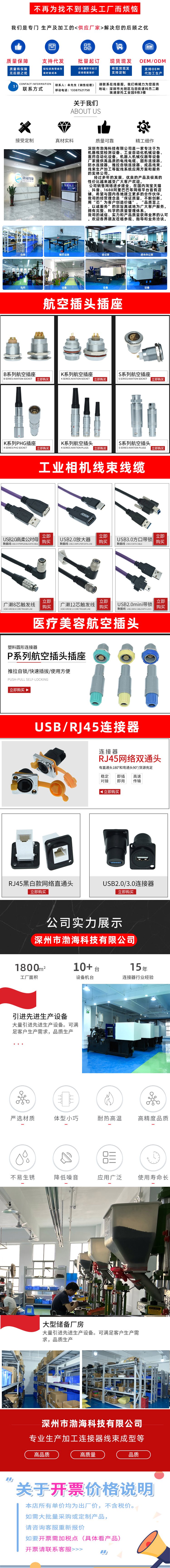 二、插座有焊线型插座、焊接PCB板插座,插头有标准插头,浮动对接型插座(可以与插头对接起到延长线线缆的作用)
