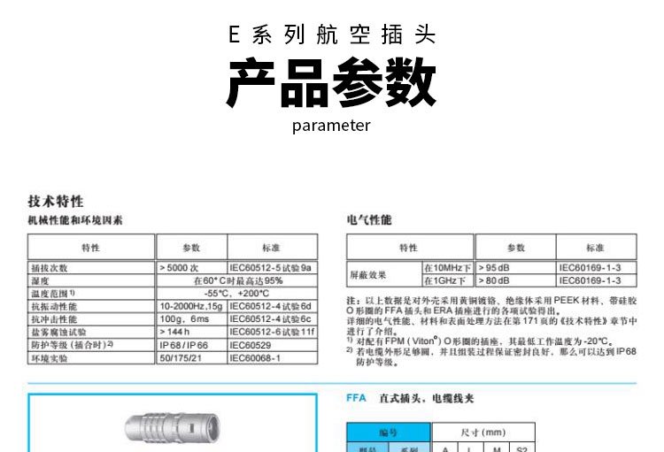 规格 | E系列FFA ERA插头插座 | ||